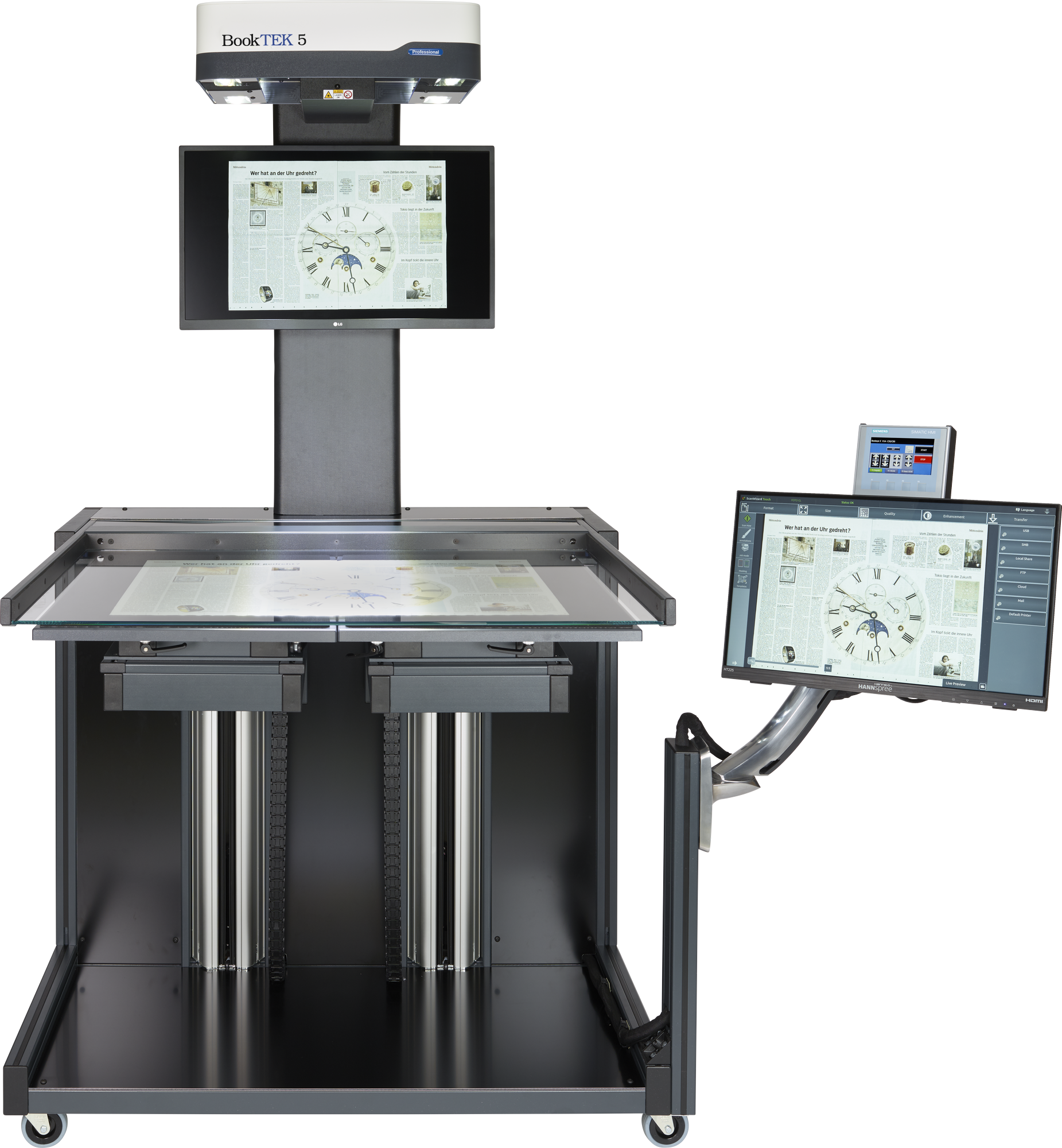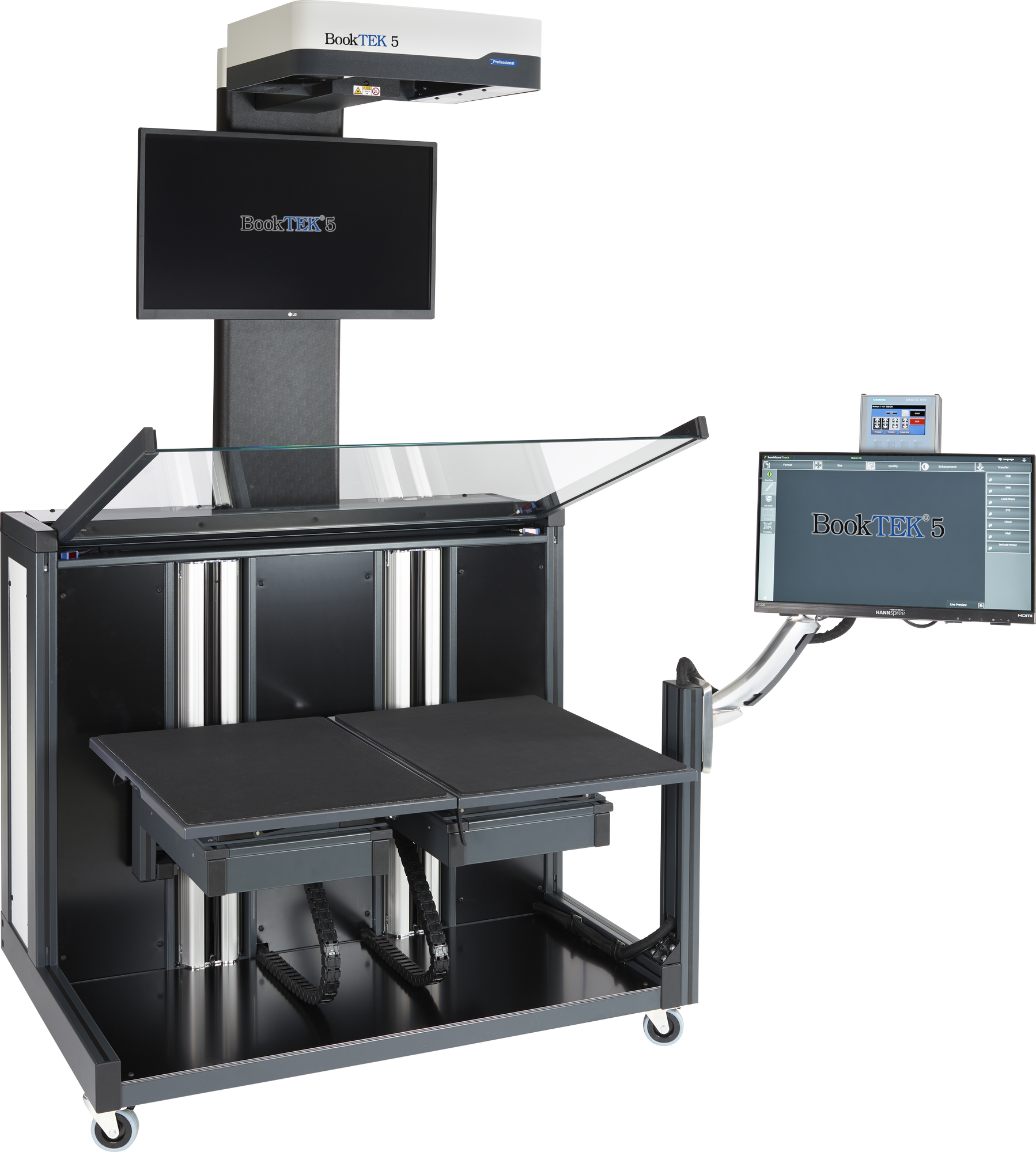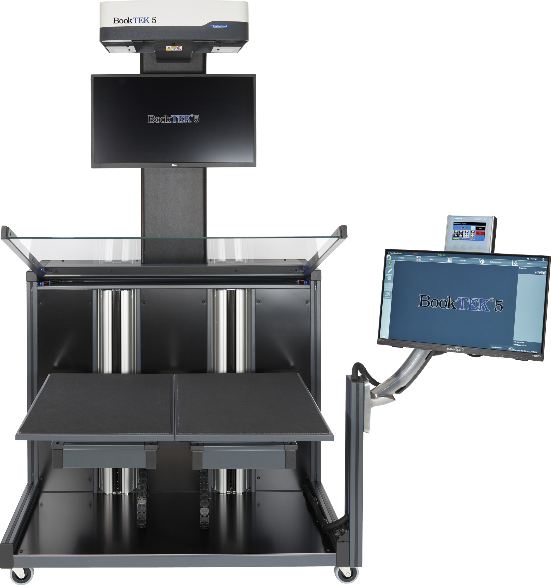 With a spacious 27-inch 4K preview monitor in front of the operator for clear, detailed scanning feedback and a 21-inch Full HD multi-touchscreen for easy operation, this setup offers optimal control and visual clarity for smooth, efficient scanning.