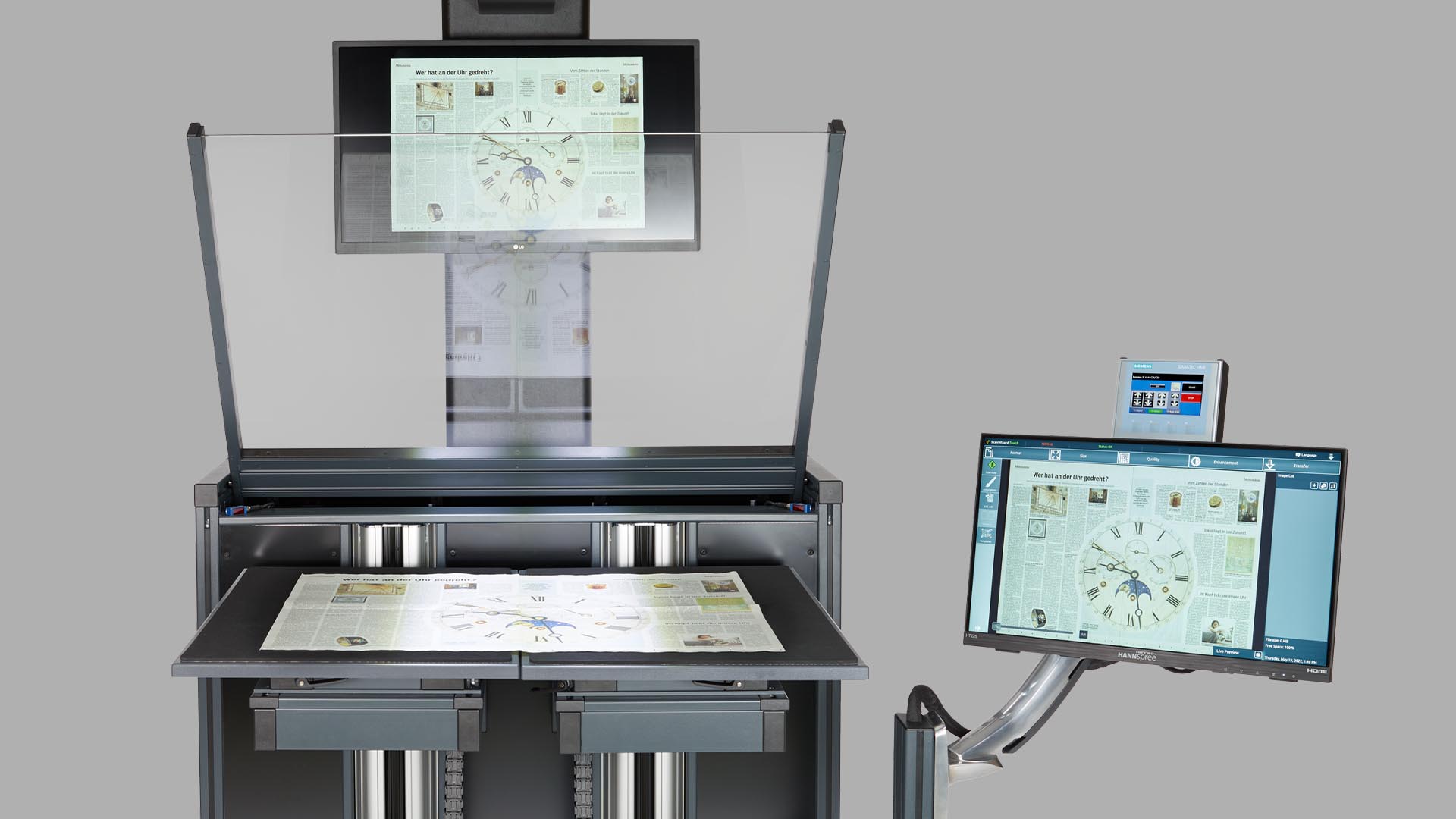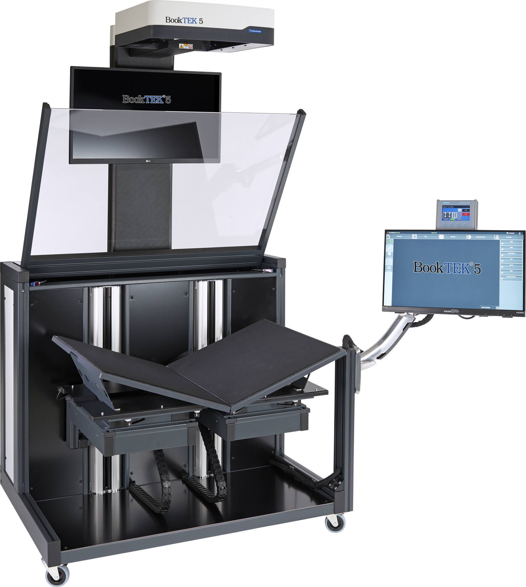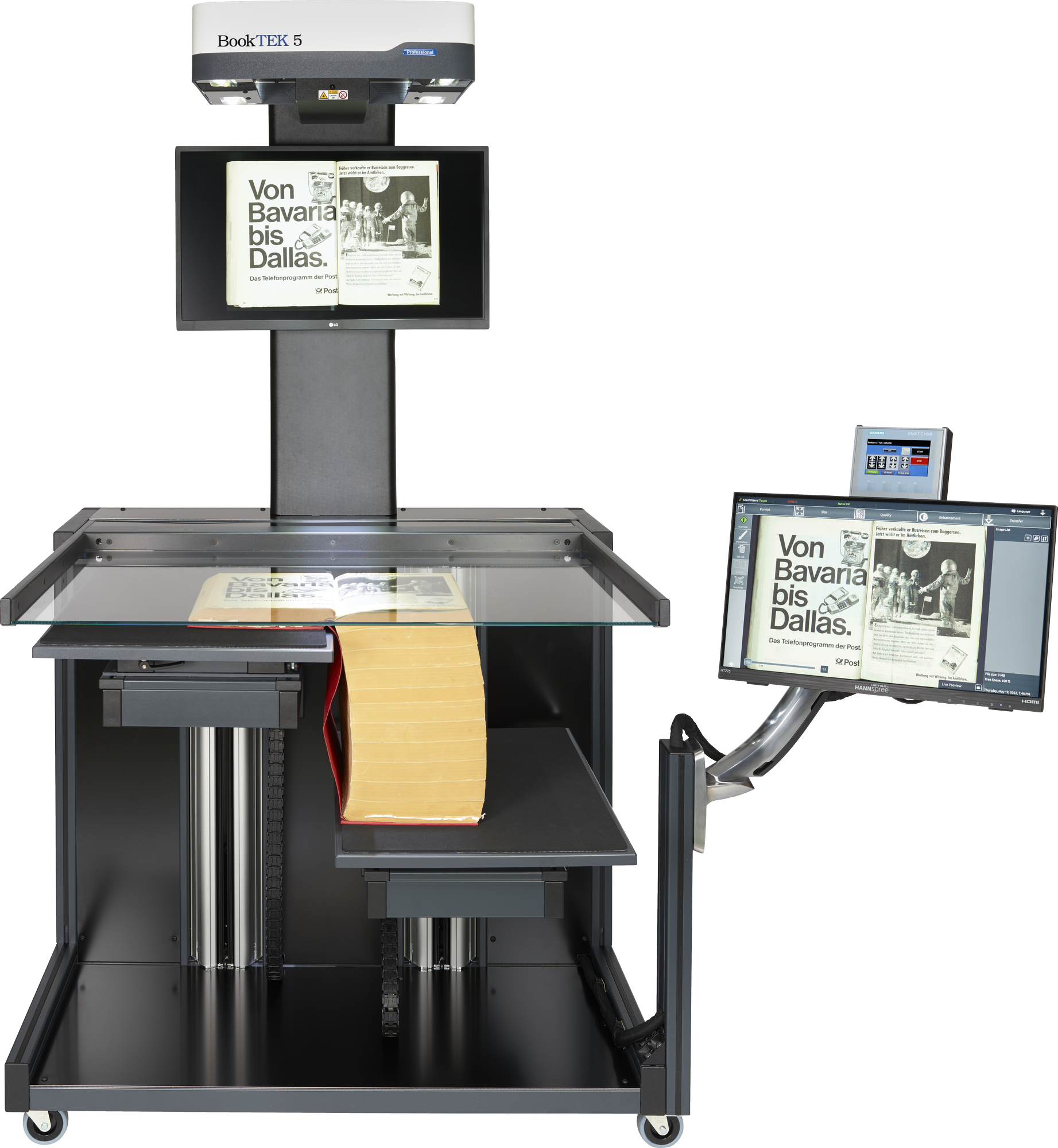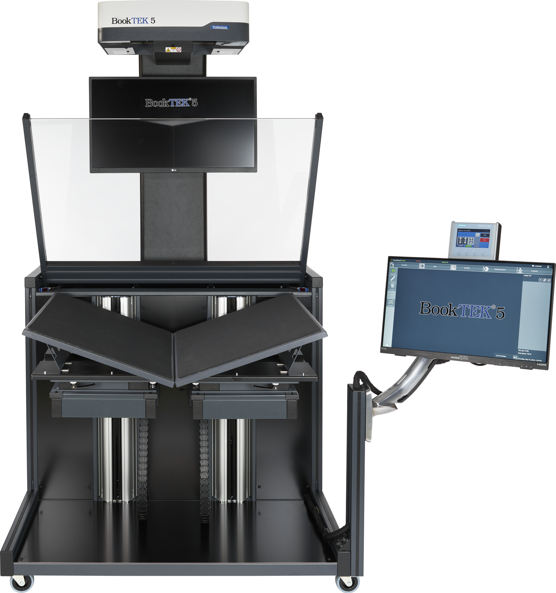 With a spacious 27-inch 4K preview monitor in front of the operator for clear, detailed scanning feedback and a 21-inch Full HD multi-touchscreen for easy operation, this setup offers optimal control and visual clarity for smooth, efficient scanning.