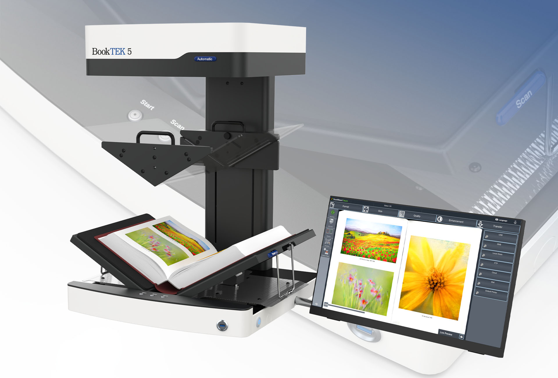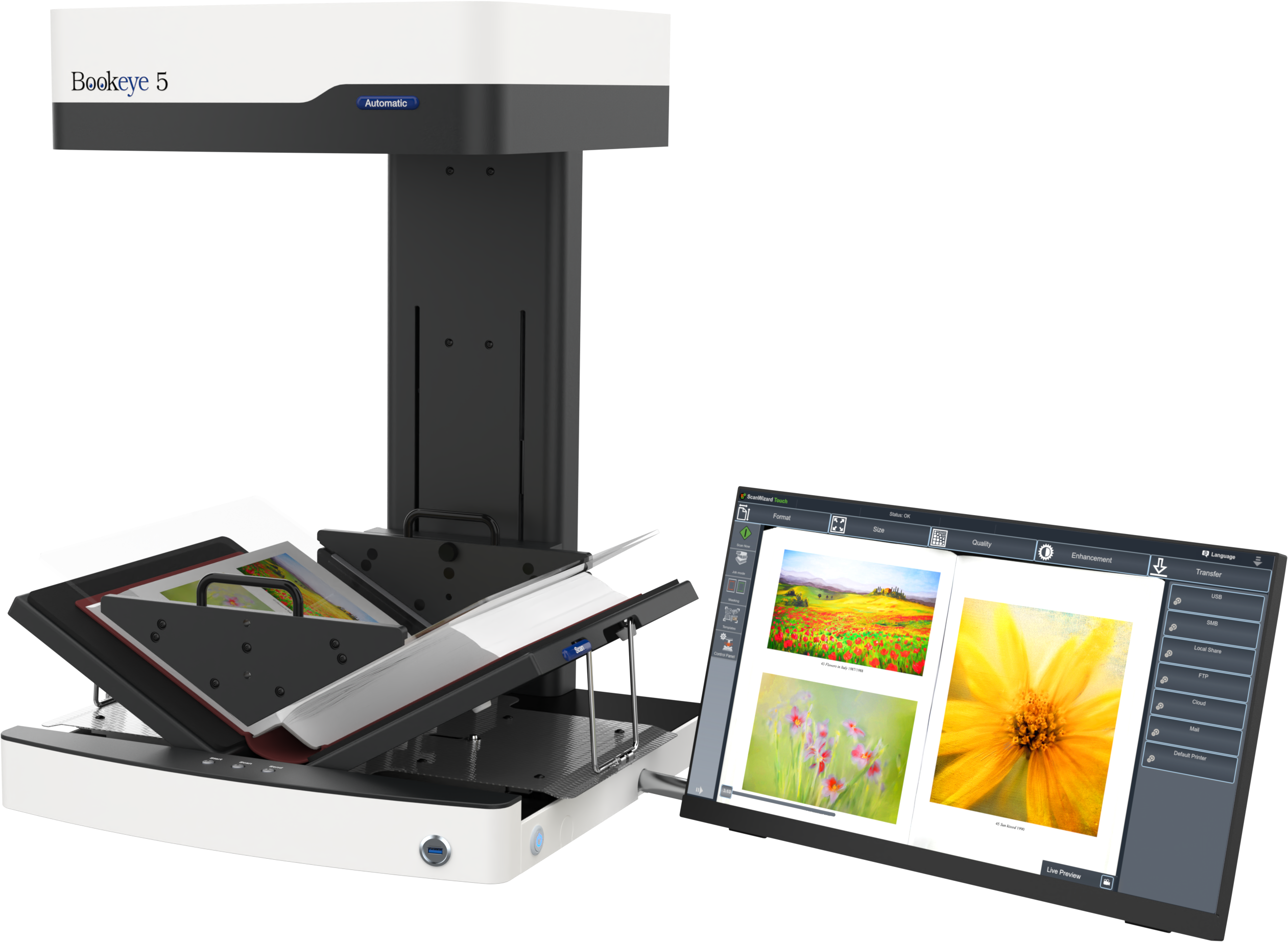 The BookTEK 5 V3 Automatic is the latest model in Image Access' 5th generation of book scanners. Redesigned to meet the latest technological and environmental standards, it offers unsurpassed image quality, simple operation, modern design and maintenance-free use for professional applications.
