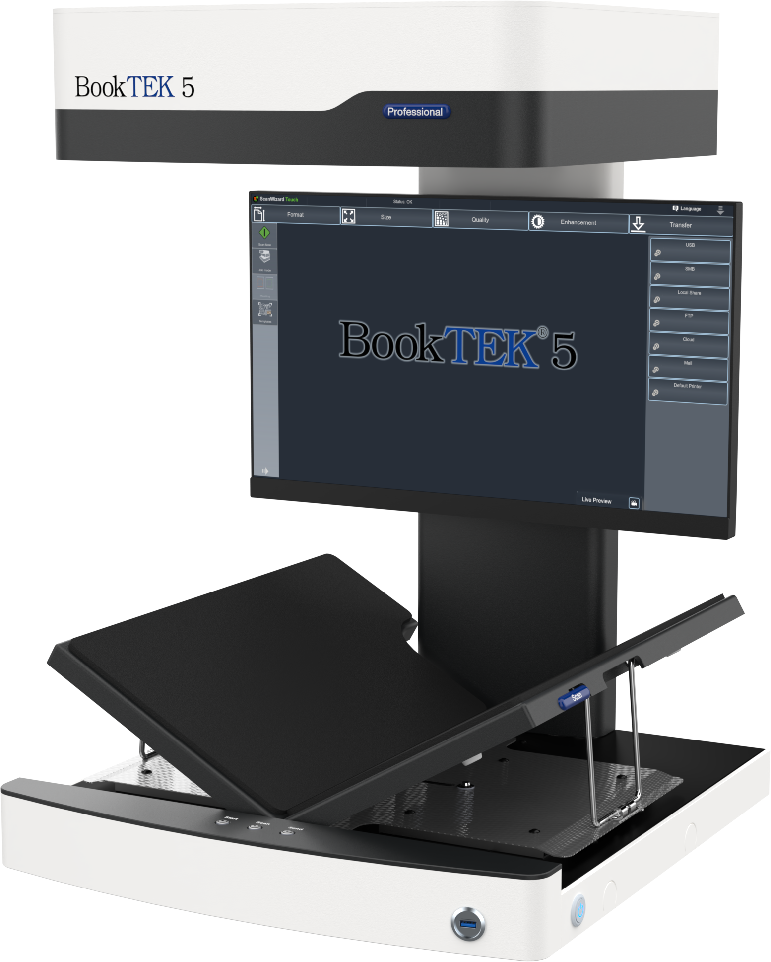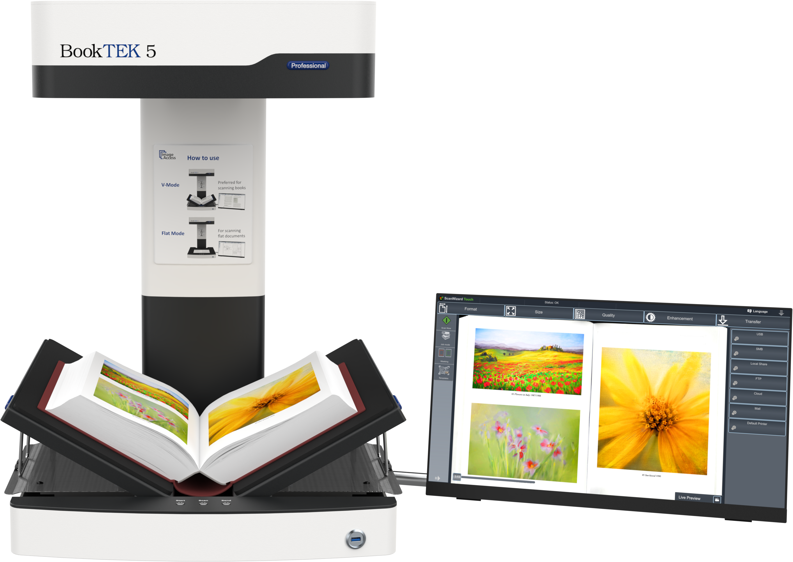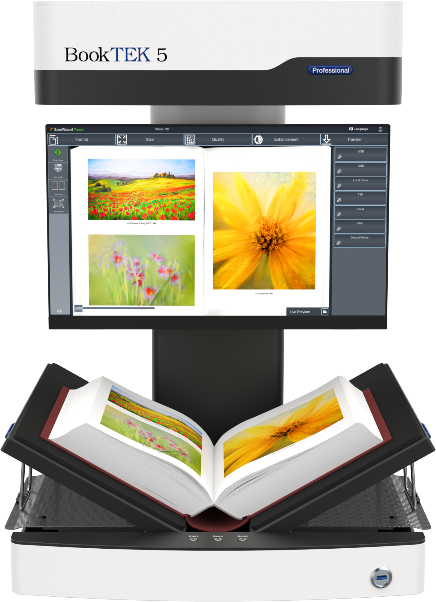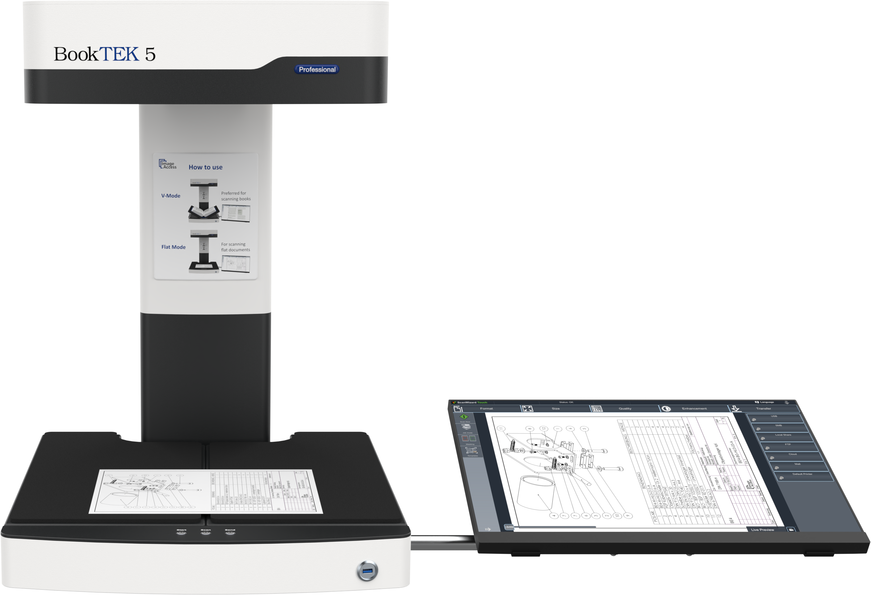 With the software option Scan2OCR, users can transform books, files and other documents quickly and easily into searchable multipage PDF files. OCR and text analysis is performed during the scan in the background, thus ensuring a smooth workflow and fast production without having to wait for OCR results.