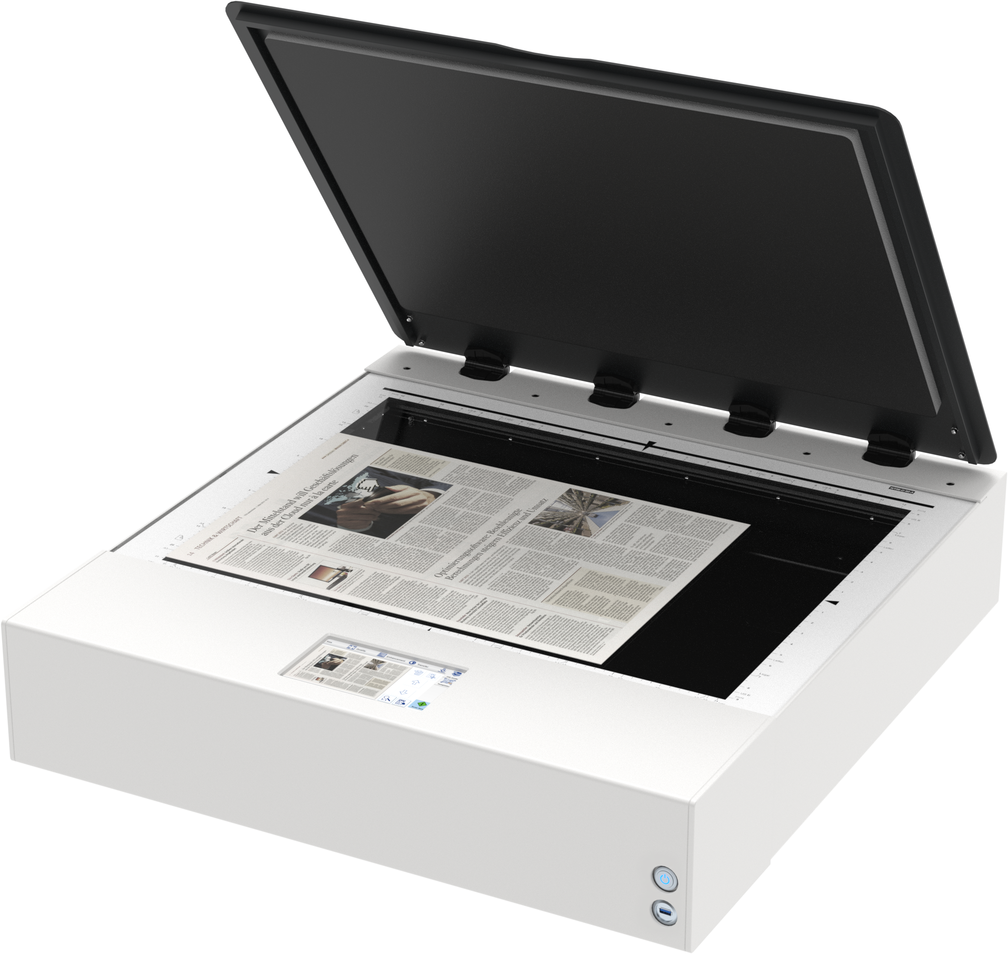 The scratch resistant, non-reflective glass plate has been expanded to reach the edges of the flatbed scanner, making it 100% protective of the documents laid on it. No more bent or folded edges on your source documents.